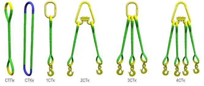 Стропы изготавливаются в кольцевом (КСК) и петлевом (КСП) исполнении. Строп КСК универсален в применении, кольцевая форма стропа увеличивает срок его службы за счет возможности смещения по длине мест, подвергающихся наиболее сильному истиранию при работе. Строп КСП представляет собой строп круглопрядный кольцевой, в котором петли сформированы за счет дополнительного чехла.